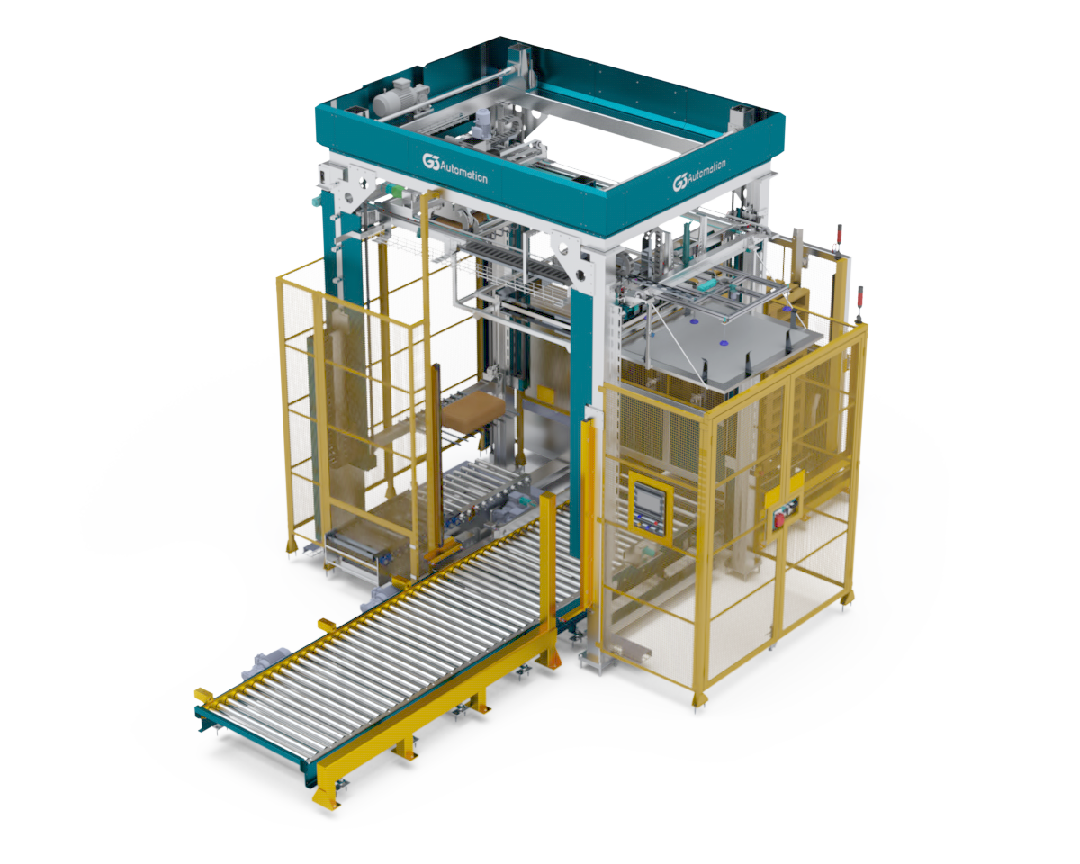 The Cartesian G3 Automation Palletizer is the ideal solution to facilitate intralogistic processes of moving boxes and products to pallets, as well as their transport to conveyors and/or other machines.
