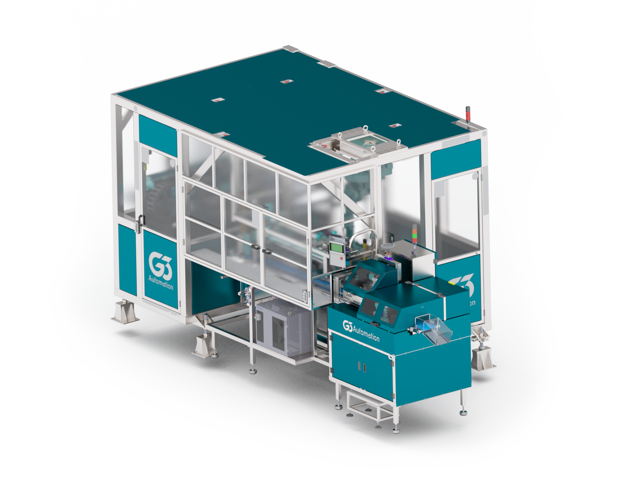 Robust and resistant structure, in accordance with the NR12 safety standard. Strategically placed light curtain sensors interrupt its operation of the in case the operator goes inside.